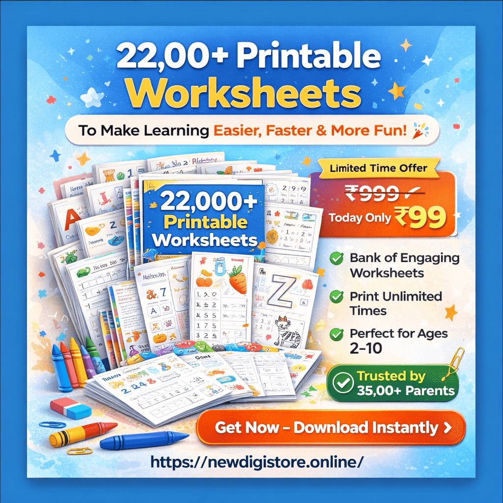 Yeh worksheet bundle sach mein bahut helpful hai. Mere 5 saal ke bete ko padhai boring lagti thi, ab khud se worksheets karta hai. ₹99 ke hisaab se value amazing hai!